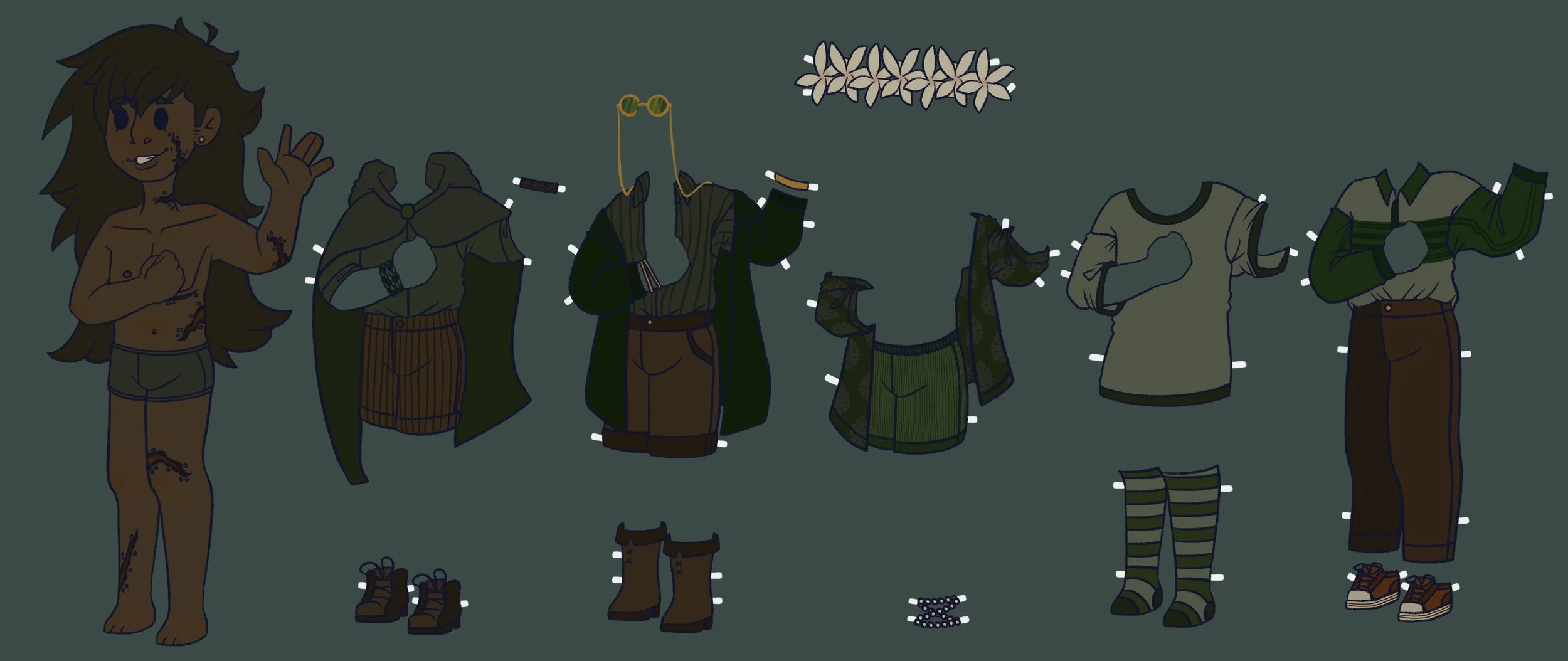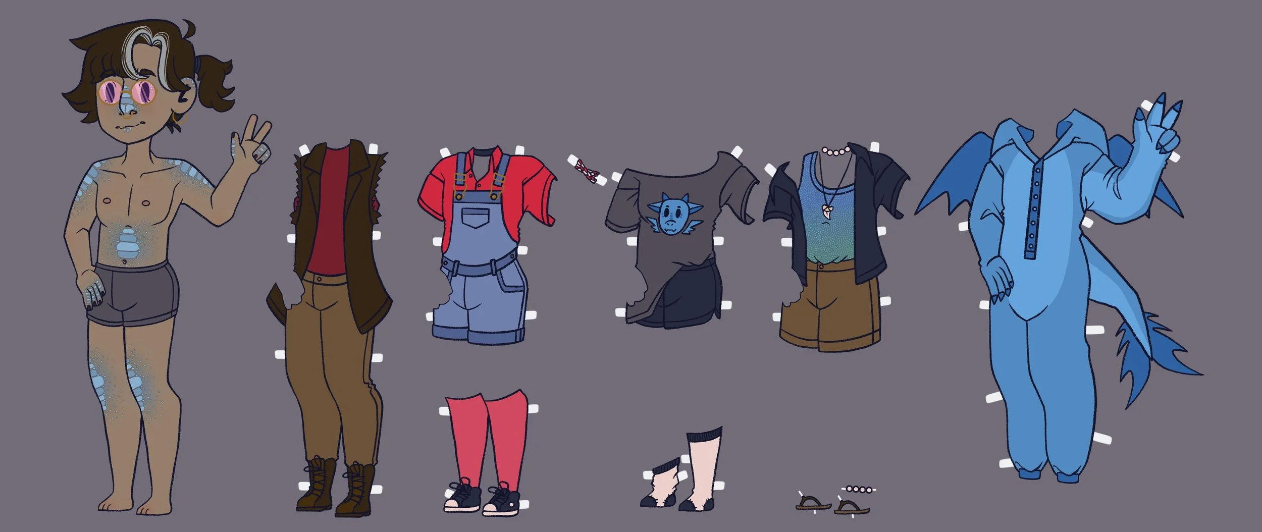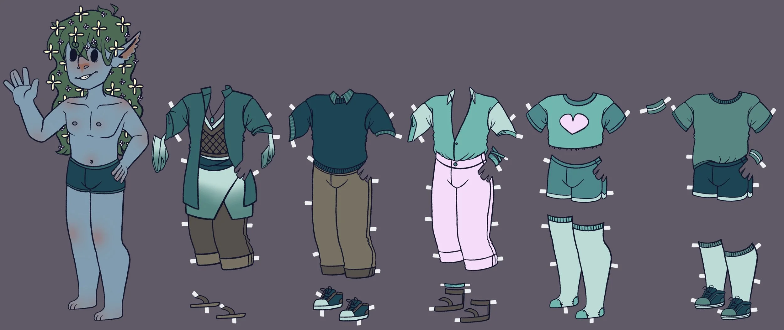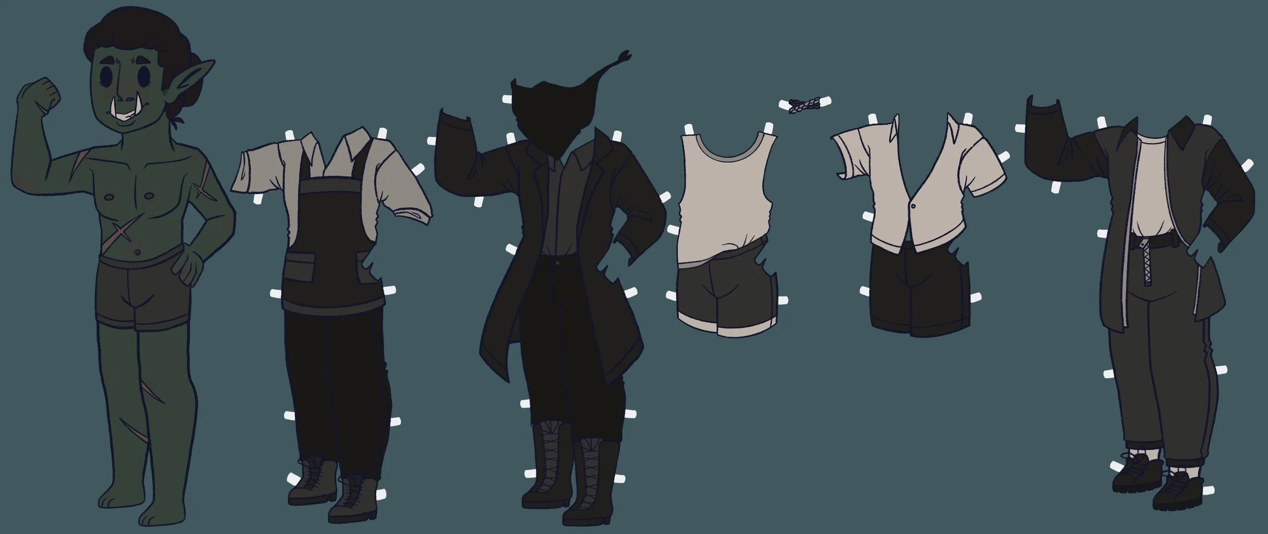 This is a set of paper dolls I created based on a few of my Dungeons and Dragons characters. Their outfits include their costumes that I originally designed for them, and a few alternate/modern outfits.